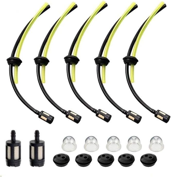 Description:Premium Material: The universal grass trimmer fuels lines hoses are crafted from oil resistant plastic material, ensuring long term performance in various environmentsHigh Temperature and Pressure Resistance: The filter lines grommet kit is designed to withstand high engine temperatures and internal oil pressureFlexible and Easy Installation: The universal grass trimmer fuels lines feature great flexibility, making it easy to bend and install in tight space without hassleLeakproof Sealing: Engineered connectors of the strimmer fuels pipe provide a tight fit with clamps, resulting in almost zero leakage to enhance the fuels system's integrityComprehensive Package: Includes 5 fuels hoses (each 22 cm/8.66 inch long), 5 primer bulbs, 5 tank seal grommets, and 2 oil filter for a complete setup solutionSpecification:Material: PlasticSize Chart:Hose Length: 22 cm/8.66 inchPackage Includes:5 Hoses With Tank Filter5 Primer Bulbs5 Tank Seal Grommets2 Fuels FilterNote:Please allow slightly errors due to manual measurement and different monitors.