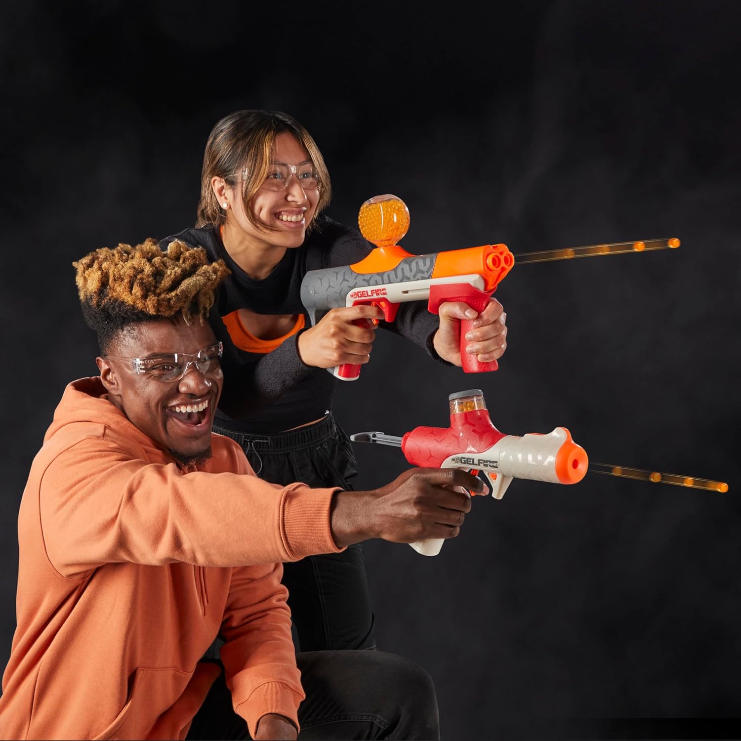 Ignite your competitive advantage with high-performance Nerf Pro Gelfire blasters featuring hydrated rounds that burst on impact! Nerf Pro Gelfire rounds come dehydrated in the box, giving you a huge amount of rounds for multiple refills. The hydrated gel rounds fire from the blaster at a high velocity and burst when they hit a target. No need to pick up rounds. Slam into battle with the Nerf Pro Gelfire Quadrant blaster that unleashes 4 rounds at a time with slam fire action! The blaster has double barrels that fire 2 rounds at a time with each trigger pull. The pump action blaster includes 5,000 dehydrated Nerf Pro Gelfire rounds that you prepare for use by hydrating the soft super absorbent polymer projectiles in water for 3-4 hours. The Quadrant blaster fires rounds at a velocity of up to 150 feet per second. It has an external 400-round hopper, trigger lock, and protective eyewear. Outdoor use recommended. For ages 14 and up. NERF and HASBRO and all related trademarks and logos are trademarks of Hasbro, Inc.