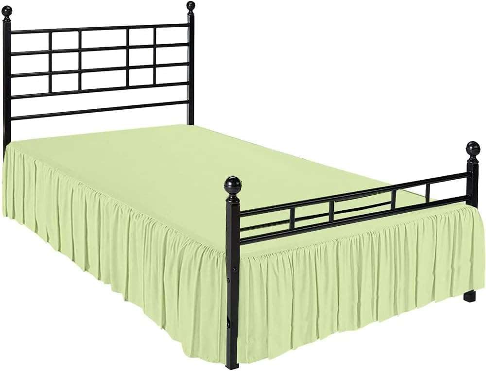 Ruffled Stylish Look Design a soft, romantic look in your bedroom with this polycotton machine-washable ruffle bed skirt. Bed skirts serve a dual purpose; they add a beautiful finishing touch for any bedroom and provide decorative coverage that allows you to store items under the bed out of sight. The dreamy ruffled drop ensures that everything under your bed stays hidden, while allowing easy access to the items that are stored under the bed. This easy care, useful and decorative bedskirt is available in 4 sizes and 10 great colors; burgundy, chocolate, dark grey, ivory, light blue, light grey, navy blue, sage, taupe and white. This bed Ruffle features 10" to 24"-inch drop that conceals your box spring and bed frame, creating a tidy, unified and contemporary look. Its long length coupled with ruffled appearance covers your bed perfectly and provides a stylish look to your bedding decor. Available in Different Sizes and Colors This bed Ruffle is available in multiple sizes and colors, letting you choose the one that can best suit your bedroom's interiors and fits your bed. Match your bed Ruffle easily with our other products, such as Duvet Covers, Sheet Set, Flat Sheets, Fitted Sheets, or Pillowcases. Following varied sizes allows this bed ruffle to perfectly fit your bedding: Twin, Full, Queen and King Sizes: Twin Measures: 39”W x 75”LFull Measures: 54”W x 75”LQueen Measures: 60”W x 80”LKing Measures: 78”W x 80”L Easy Care Bed Skirts. Made of easy-care poly/cotton blend, these bed skirts are wrinkle free and fade resistant. Machine wash in cold water, tumble dry on low.